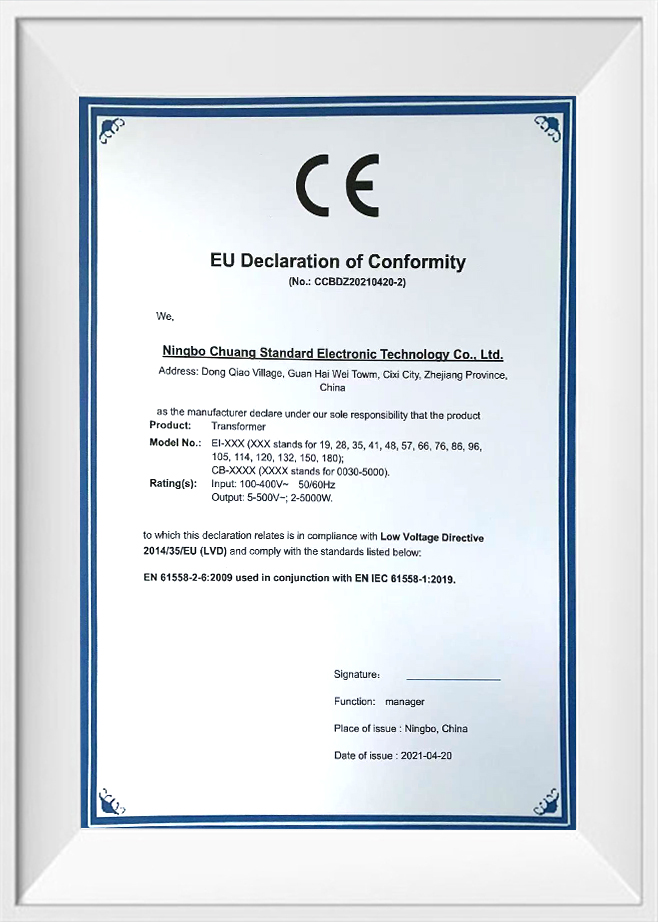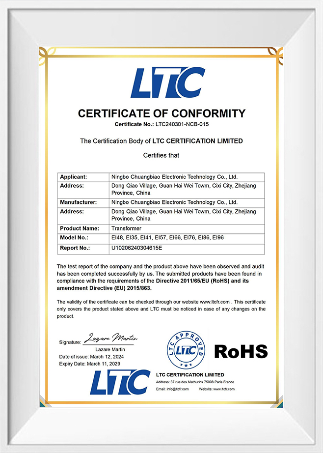 Трансформеры изоляции Ningbo Chuangbiao Electronic Technology используют высококачественные изоляционные материалы и высокотемпературную конструкцию, которая может работать в высокотемпературных и суровых условиях для обеспечения долгосрочной надежной работы. Компания строго следует за стандартами системы управления качеством ISO 9001 и проводит комплексные качественные проверки и тесты на каждом изоляционном трансформаторе, чтобы обеспечить стабильность и долговечность продукта в разных средах. Кроме того, продукт соответствует экологической сертификации ROHS, использует экологически чистые материалы, соответствует международным экологическим стандартам и имеет хорошо продуманную высокоэффективную систему конверсии для минимизации потери энергии, повышения общей энергоэффективности системы и снижения рабочих затрат в долгосрочном использовании.